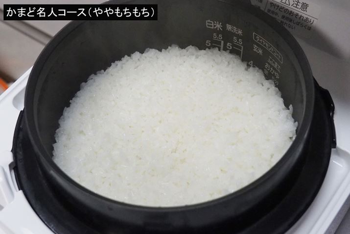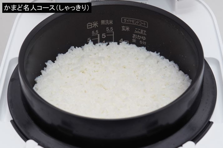 「そくうま」コースで炊いたごはんは、粒感と歯ごたえが強くなる。甘みは「かまど名人」コースと比べると落ちるが、短時間で炊けると考えると実用性は高い