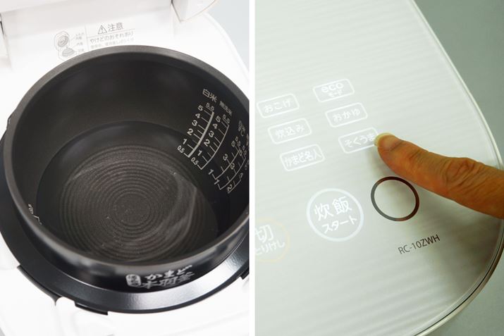 「かまど名人」コースはおいしさを優先するため、最短でも約45分の炊飯時間がかかる。そこで、時間がない時に利用したいのが「そくうま」コースだ。炊飯時間は約30分となっており他社炊飯器の急速モード(炊飯時間:約15〜20分)に比べると長いが、そのぶん味わいは上々。時短メニューでも真空にして米に吸水させる「真空ひたし」が、RC-10ZWHでは効いているからかもしれない。