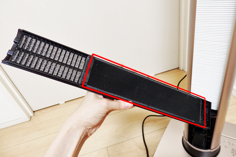 背面パネルの内側には脱臭フィルターが装備されており、部屋に漂うニオイを抑制する