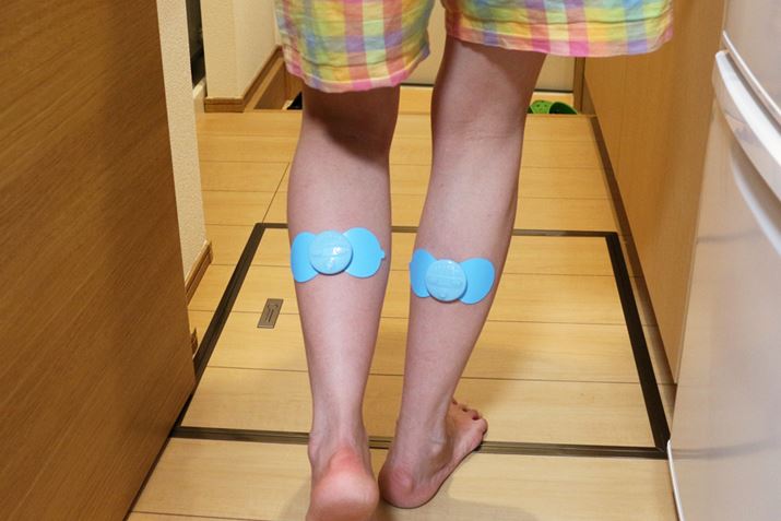 脚に装着したまま歩くこともできるので、マッサージ中に宅配便が届いても大丈夫。ただし、低周波で刺激されるタイミングでよろけてしまうこともあったので、脚への装着時はご注意を