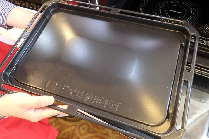 オーブン調理で使用する角皿は周囲にスリットを設けることで熱風の循環を妨げないようにしているほか、セラミックのコーティングで発熱効率を高めている