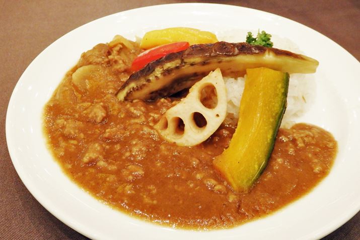 焼き野菜を飾ったちょっとおしゃれなカレーが完成。じっくりグリルされた野菜は甘みがよく引き出されていた。一度にできてしまうのは、手間も時間もかからずうれしい