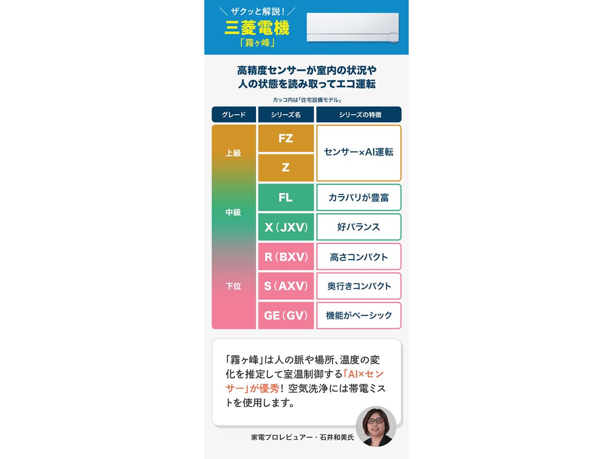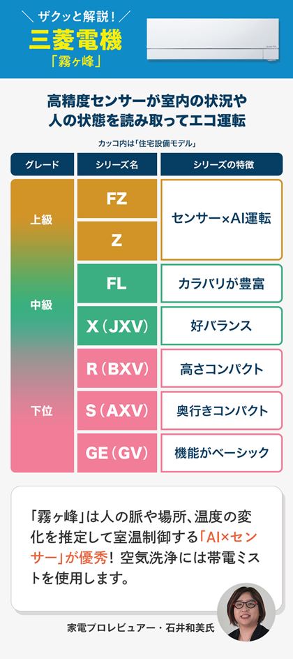 三菱電機「霧ヶ峰」の「Zシリーズ」は、センサーと洗浄機能がすぐれている上級モデル。