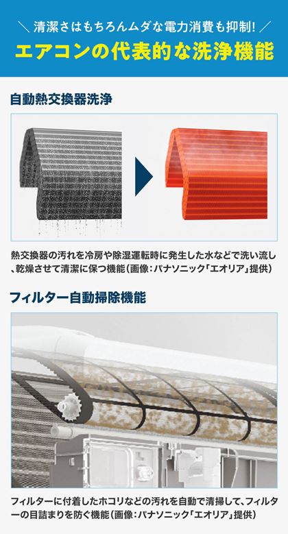 「フィルター自動掃除機能」は便利。ただ、自動掃除の仕組みが複雑だと、業者にクリーニングをお願いしたときに追加料金がかかることも……。購入前には、「フィルター自動掃除機能」の仕組みもチェックしておきましょう。