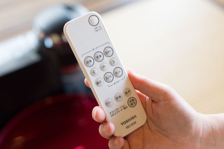 本体にはホコリがつきやすいので、操作はリモコンがおすすめ。お掃除モードは、「自動」「手動」「スポット」の3パターン。その他に「タイマー」「マナー」「充電」「手動吸込」などすべての操作をカバー