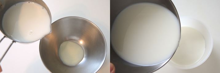 (1)練乳に牛乳を加えてよく混ぜ、溶かします。