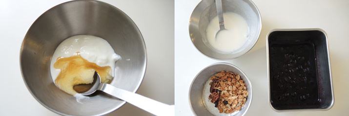 (5)ボウルにヨーグルトとハチミツを入れてかき混ぜ、ヨーグルトソースを作ります。