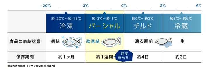 「パーシャル」は食品を部分的に凍らせて保存する保存方法のことで、冷蔵と冷凍の間の温度で食品を微凍結状態にし保存する機能。これにより“生鮮食品の鮮度を1週間キープできる“とのこと(画像は公式サイトより)