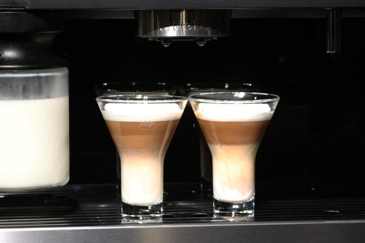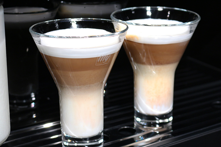 「CVA6800」で作ったラテマキアート。コーヒーとミルクがキレイに層で分けられ、グラデーションになっている。まるで、カフェで出てくるドリンクのようだ