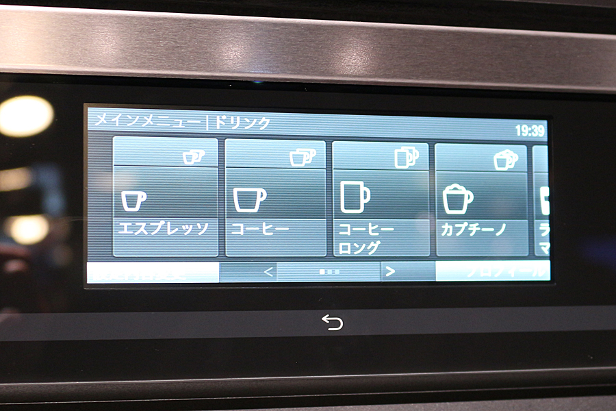 「CVA6800」で作れるドリンクの種類は、エスプレッソ、コーヒー、カプチーノ、コーヒーロング(エスプレッソを薄めたブラックコーヒー)、ラテマキアート、カフェラテ、お湯、ホットミルク、フォームミルクの9種類。コーヒードリンクは、豆の量(7段階)、豆の挽き具合(5段階)、蒸らし時間(3段階)、抽出温度(5段階)、抽出量、ドリンクの構成量(コーヒー・エスプレッソ、ミルク、フォームミルク)といった抽出条件を細かくカスタマイズすることができる。また、よく使用する抽出条件は、「ユーザープロフィール」に登録しておけるので、毎回細かい設定をし直す必要がない。忙しい朝の時間も、水と豆とカップをセットしておけば、オリジナルカスタマイズのおいしいコーヒーを楽しむことが可能だ。なお、ドリンクは同時に2杯抽出可能だ。