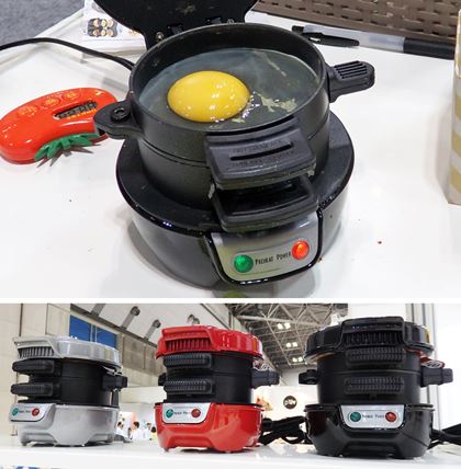 まずは、見ているだけで楽しくなってくる「エッグマフィンメーカー」(アメリカンビーチ)を紹介しましょう。3枚の独立した鉄板があり、マフィンと目玉焼きなどを一度に調理可能。さらに、その鉄板を順番にスライドしたり外していくと、重ねる手間もなくエッグマフィンが完成します。時短にもなるので、朝食マフィンブームの火付け役になるかもしれませんね。