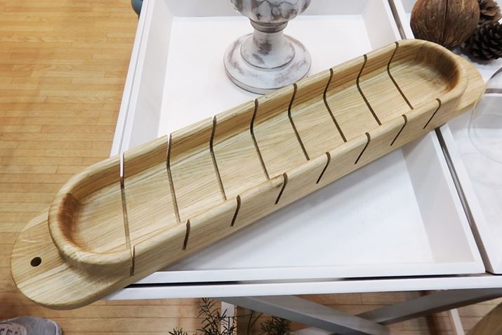 ナチュラル&シャビーな木製家具やテーブルウェアで女性ウケするアイテムを数多く展示しているMa Maisonで、「コレはなんだろう?」と気になったのが、黒いプレート。これは、盛り付けた食材に熱を伝えにくく、保冷状態を保つことができる特殊な石材・コールドストーンを使用したプレートです。ほかにも、フランスパン用のカッティングボードやワイングラスホルダーなどもおしゃれでときめきました。