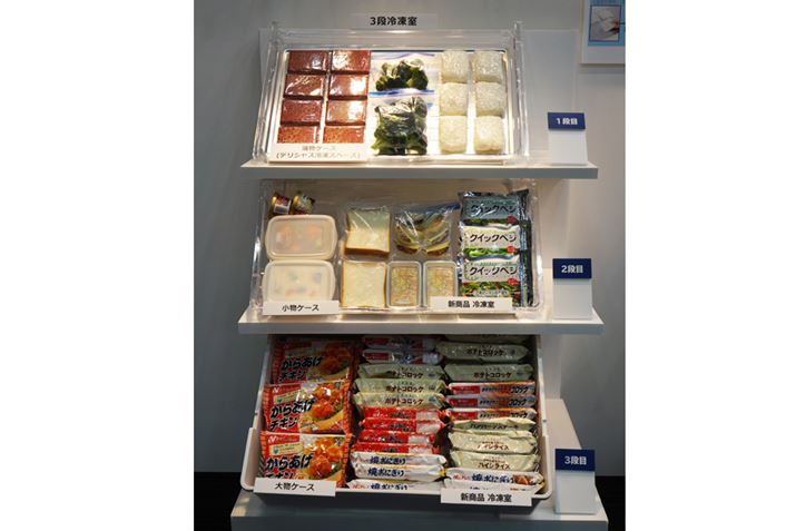 最上段の「デリシャス冷凍」スペースにはすばやく冷凍したい生鮮食品やごはん類を、中段には作り置きの惣菜などを、深さのある最下段はかさばりやすい冷凍食品をスッキリ収められる