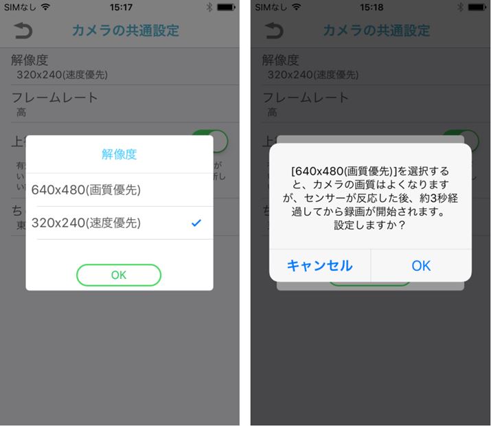 モニター画面は画質優先と速度(フレームレート)優先を選べるようになっています。ちなみに、画質優先の場合は録画開始が3秒遅れるがそれでよいか聞いてきます