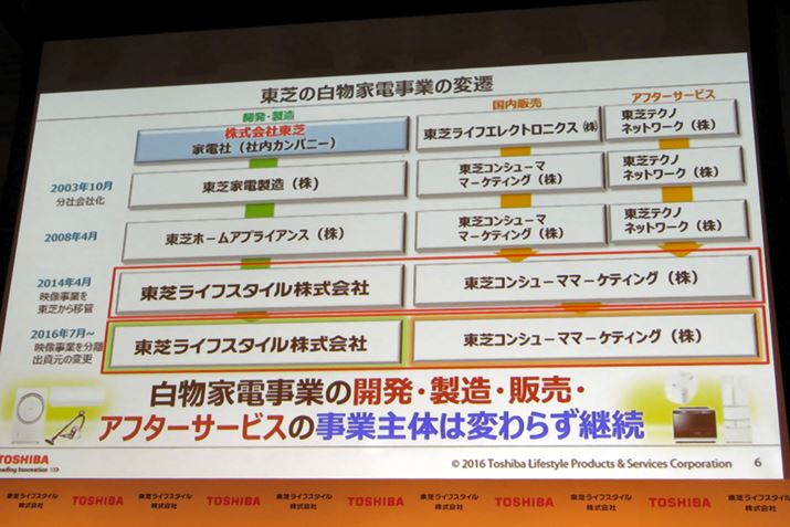 「日本国内における白物家電事業はこれまでどおり、“東芝ブランド”として東芝ライフスタイルがすべてそそのまま継続する」と石渡社長