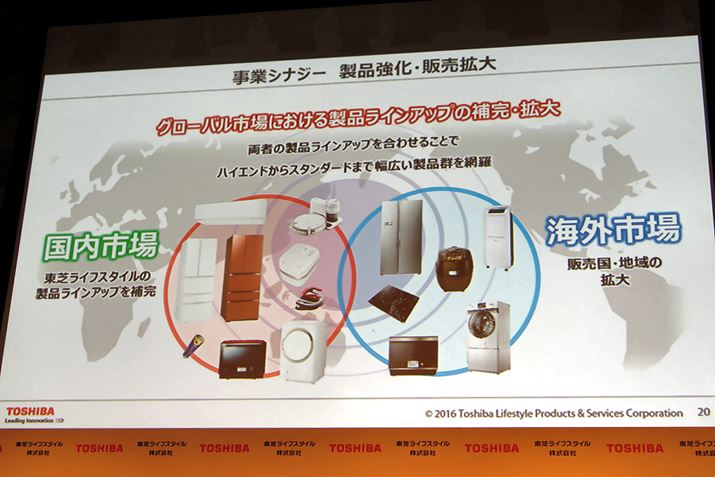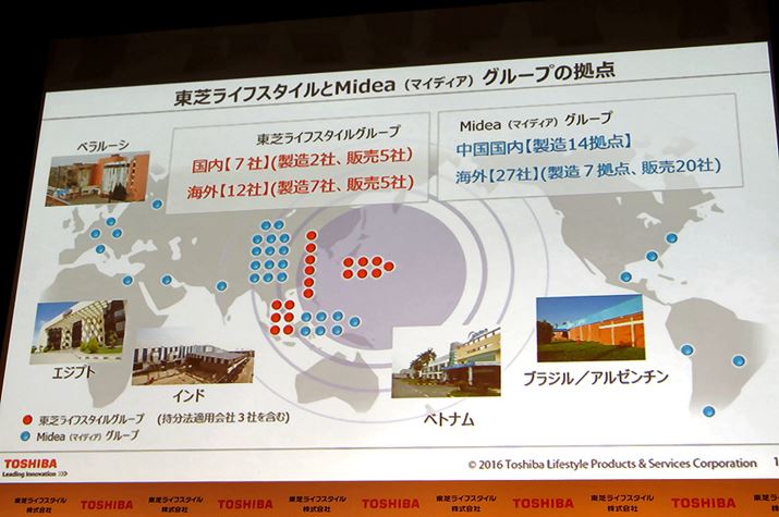 生産拠点(中国14/海外7)と販売チャネル(200以上)を持つマイディアと東芝ライフスタイルの拠点を合わせればよりグローバルな展開が見込める