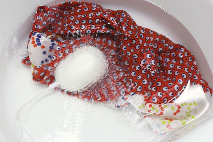 「どこでもUSB洗濯機 ウォッシュブル」は、汚れの部分がよく振動するようにTシャツで包みます
