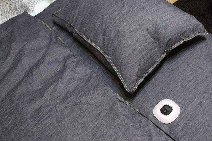 本体は、体の中心から50cm以内の場所に置いて眠る。寝具によってはうまく測定できない場合があるそうなので、1度テストモードで正常に測定できるかをチェックするとよいだろう