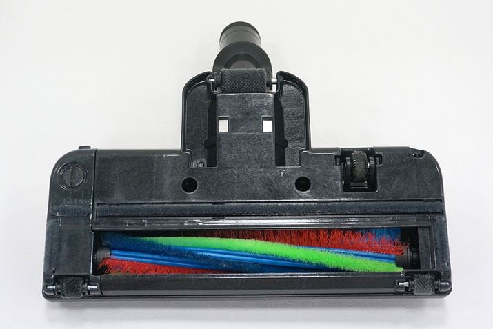 ヘッドは、3種類のファイバーブラシが搭載された「トリプルイオンファイバーヘッド」。じゅうたんの奥やフローリングの溝に入ったゴミも、かき上げて吸い込む