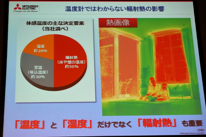 人が暑いと感じる体感温度は、床や壁から出る輻射熱からの影響が大きい。温度計で冷房が必要なタイミングを見ているだけでは、的確ではないのだ