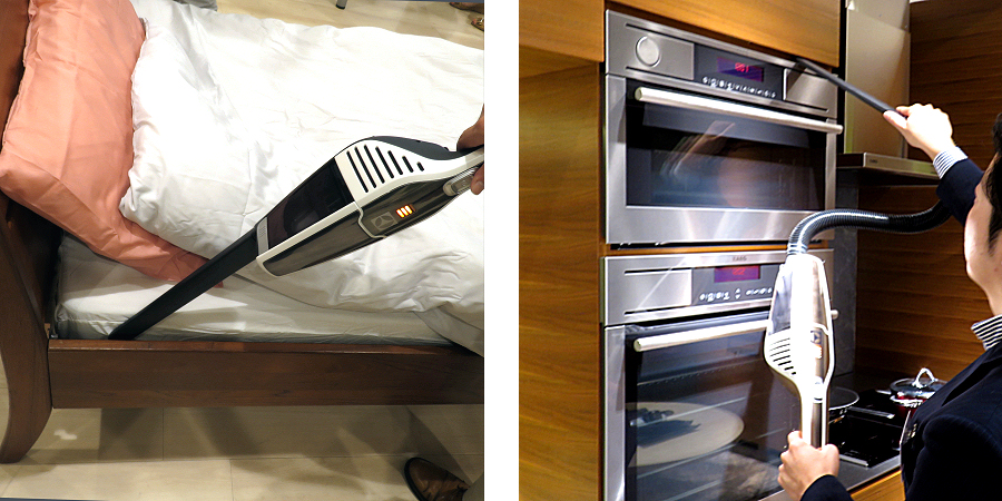 会場では、実際に使ってその使い勝手をチェックすることができた。カバーを巻き込むことなく布団の上を滑らかに走らせることができ、使い心地はかなり◎。布団用ノズル装着時でも重量は約1.27kgと軽量なので、女性もラクに扱うことができた。その様子は以下の動画でご確認いただきたい。