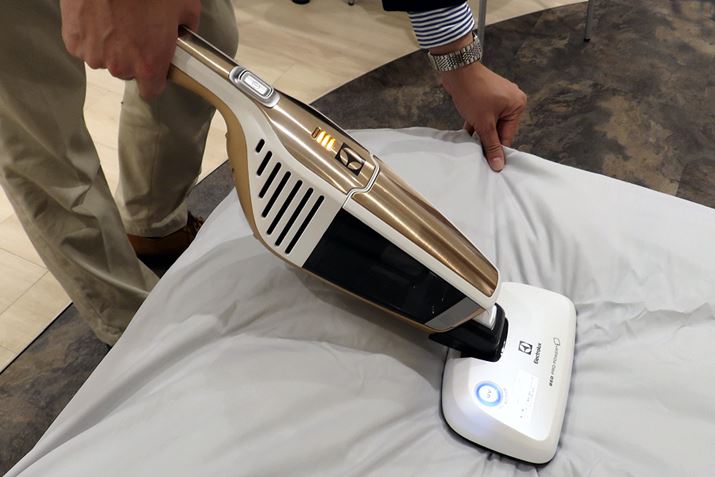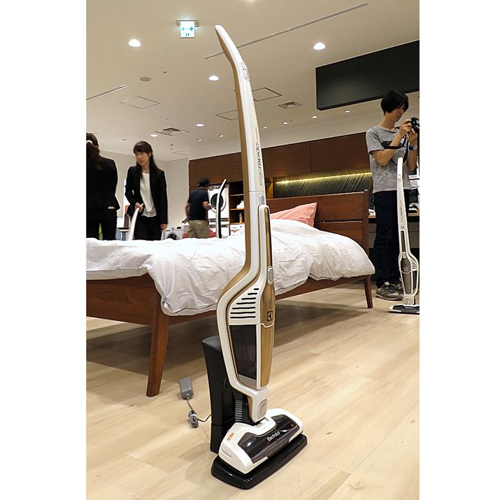 なお、当日、製品説明に登壇したエレクトロラックス・ジャパン 代表取締役社長 長岡慶一氏はエルゴラピード・リチウムベッド・プロ・パワーの発売において、「これまで布団クリーナーを買わなかった人の理由の多くは、布団掃除の必要性を感じつつも普通の掃除機と布団用掃除機を2つ置く場所がないこと、また布団クリーナーの汎用性の低さにあった」とし、その中で開発されたのが本製品なのだという。「エルゴラピード・リチウムベッド・プロ・パワーがあれば、この1台で床も布団も、家の中のちょこっと掃除もすべてまかなえる。それでいてA4サイズの収納スペースに設置できる。これまで先の理由で購入できなかった層にもぜひ注目してもらいたい」とアピールした。
