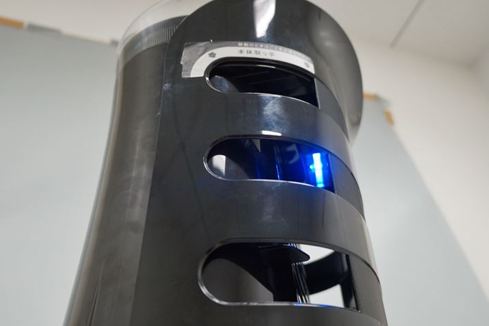 「蚊取空清」モードを押すと、UVランプが点灯します。風量は比較的弱めな印象