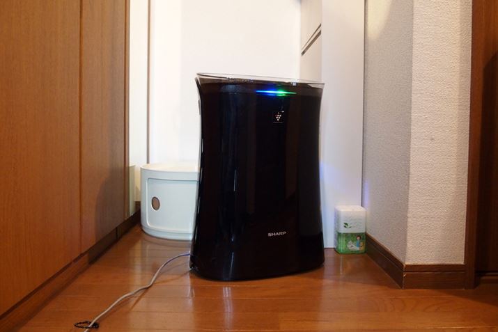 玄関入ってすぐの所に設置して、使用。ニオイや花粉対策にもなるため、玄関で空気清浄機を使うのは有効です
