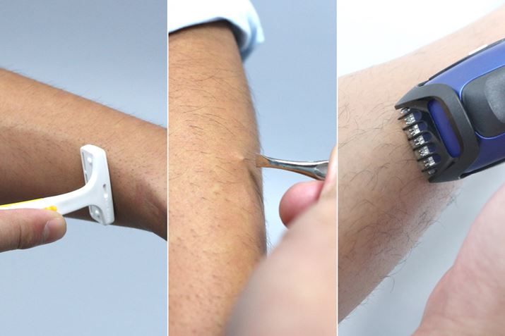 カミソリや毛抜きでの処理は、肌や毛穴の負担に。また、カミソリやシェーバーなどでカットすると、毛の断面が平らになって手触りがチクチクになってしまいます