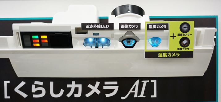 人の位置・活動量や間取りをセンシングする「画像カメラ」、人の周囲や天井・床・壁・窓の温度を感知する「温度カメラ」、床材などを判別する「近赤外線LED」、そして「近赤外線LED」と「画像カメラ」を組み合わせて家具の場所や形状を検知するのがXシリーズに搭載されているセンサー機能。「くらしカメラAI」と称されている