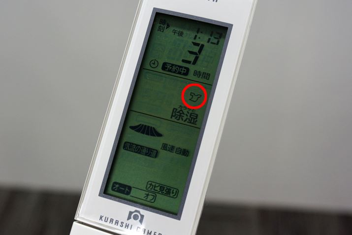 「カラッと除湿」ボタンを押して、リモコンに服のマークを表示させれば「ランドリー除湿」が作動。洗濯物を見つけて、集中的に乾燥させてくれる