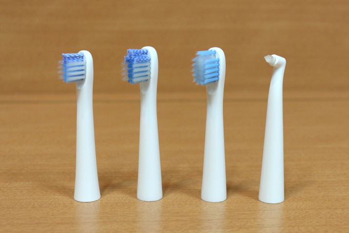 「HT-B315」には、「トリプルクリアブラシコンパクト」のほかに、「トリプルクリアブラシ」、2種類の微細毛が歯面の凸凹や歯と歯の間、歯周ポケットの歯垢をやさしくかき出す「極細マイルドブラシ SB-082」、磨きにくい歯間や歯並びの悪い場所の歯垢をかき出す「すき間みがきブラシ SB-092」が付属しており、用途に応じて使い分けることが可能だ。