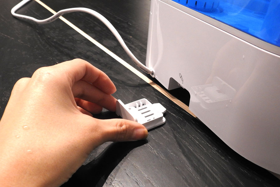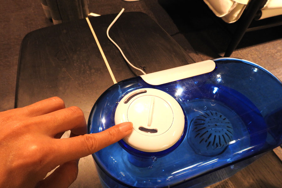 このほか、動作音が非常に小さい点も特徴。実際に動作音を聞いてみたが、ほとんど音が気にならないレベルだった。音のレベルはフルパワー時でも38dBと、図書館の換気音とほぼ同等とのことで、就寝中でも安心して使用できる。さらに、本体内に浄水カートリッジを備えているのもユニークな点。ただし、現在のところ、別売りでの交換用浄水カートリッジは用意していないとのこと。製品は18カ月の無料保証が付いているので、万が一その間に浄水カートリッジが壊れてしまった場合は、本体ごと交換してもらえるそうだ。
