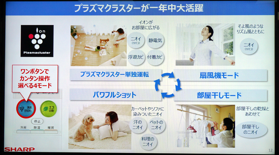 ちなみに、プラズマクラスターイオンは単独でも運転可能。冷暖房運転をしない季節に利用しましょう