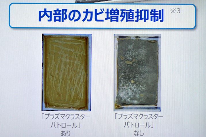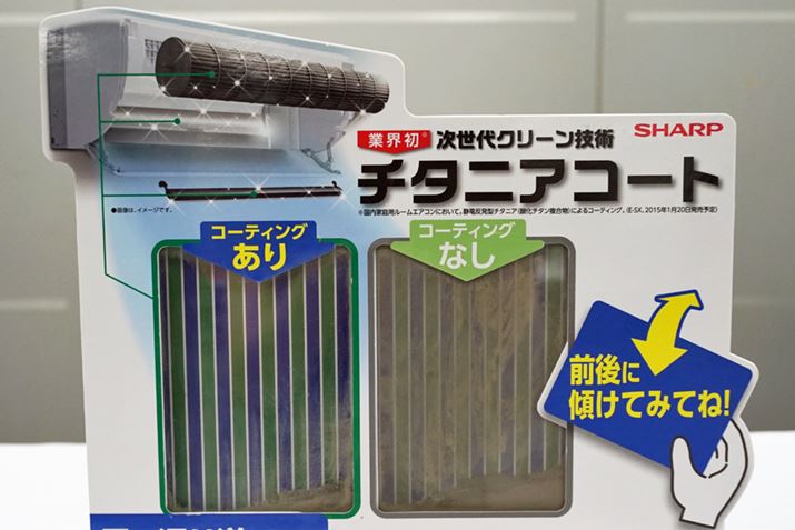 プラズマクラスターイオンとは関係ありませんが、ファンや送風路など空気の通り道には静電反発型チタニアを採用。カビの原因となるホコリを弾くため、コーティングの有無でホコリの付き方には明らかな差が出ていますね