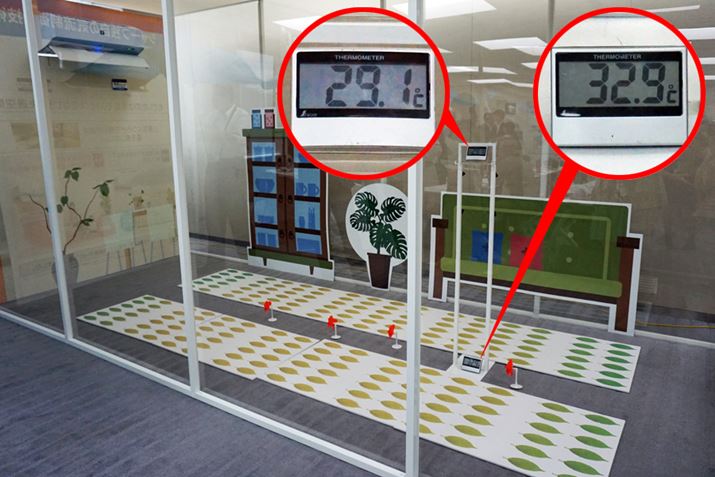 暖房運転をしている室内は、足元と上部で4℃近い差が! しかも、エアコンからかなり離れた位置でも頭寒足熱ができています