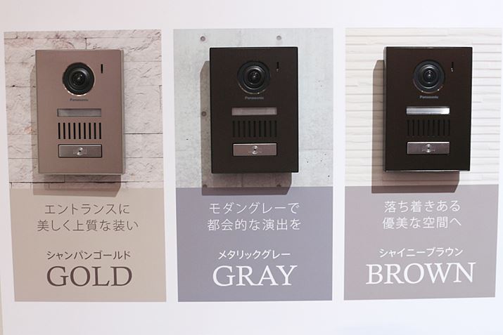 玄関のイメージに合わせて着せ替えできるデザインパネル「VL-VP500」も同時に発売予定。シャンパンゴールド、メタリックグレー、シャイニーブラウンの3色が用意される。市場想定価格は15,000円前後
