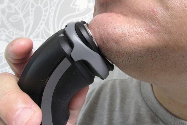 ヘッドが凹むくらいに肌に当てることでしっかりと肌に食らいつき、ヒゲだけを剃っていってくれる。同じことを深剃りのきく往復式シェーバーでやったら出血確実(!?)な程度の圧だが、勇気を持ってやってみると実によく剃れる