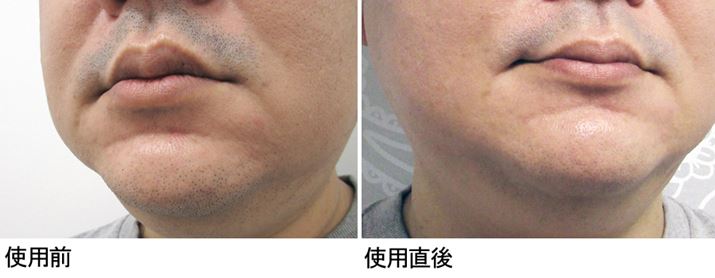 「PT764」使用前(左)と使用直後(右)。使用後に肌を触った感覚はかなりサッパリ。ヒリヒリする感覚がほとんどないのに驚いた