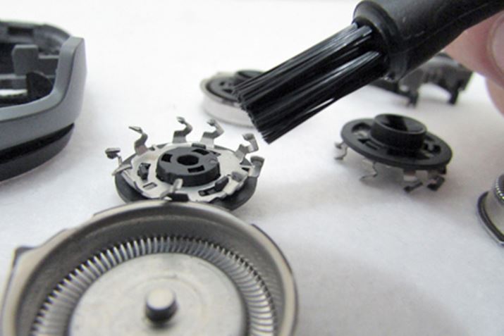 外刃と内刃は乾燥させてからブラシで清掃。部品をなくしそうになるので、転げ落ちて排水口に飲み込まれることのない場所で挑みたい
