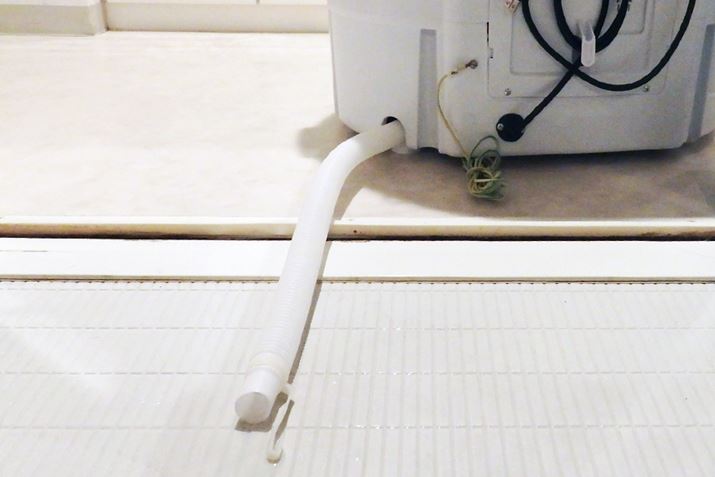 設置は、排水ができる場所が鉄則! 排水をバケツに溜めて捨てることもできますが、漏れることもあるので濡れてもいい場所のほうがよさそうです