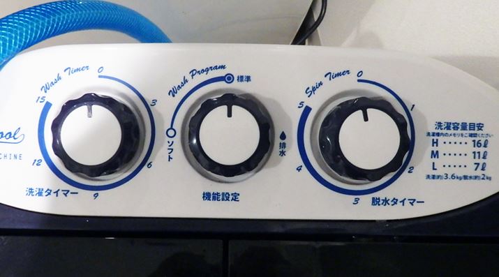 さっそく、洗ってみましょう。衣類を洗濯槽にセットしたら水を溜めて洗剤を入れ、給水スタート。自動で給水が開始/停止する機能や洗剤ケースは搭載されていないため、すべて手動となります。洗濯が終わったら、隣りの槽に洗濯物を移し替えて脱水。そして、再び洗濯槽に入れてすすぎ、最後に脱水して終了です。洗濯モードは「標準」と「ソフト」しかありません。