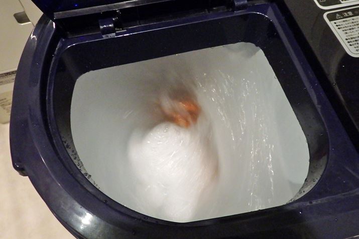 脱水したら、再び洗濯槽に入れてすすぎ、最後に脱水で絞ったら洗濯完了!