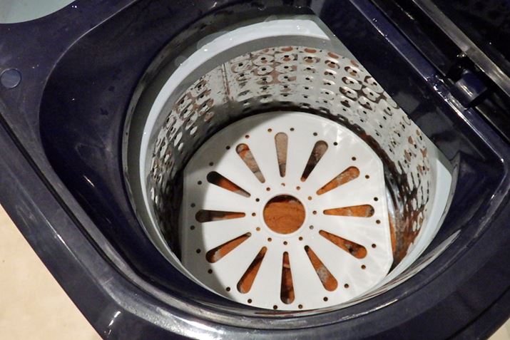 洗濯時に水流を生み出し、上下に洗濯物を入れ替えたりするためのパルセーターが底部にあります。槽の側面には、こすり洗いの効果を発揮するような突起はほとんどないので、主に水流によるかくはんで汚れを落とすようですね
