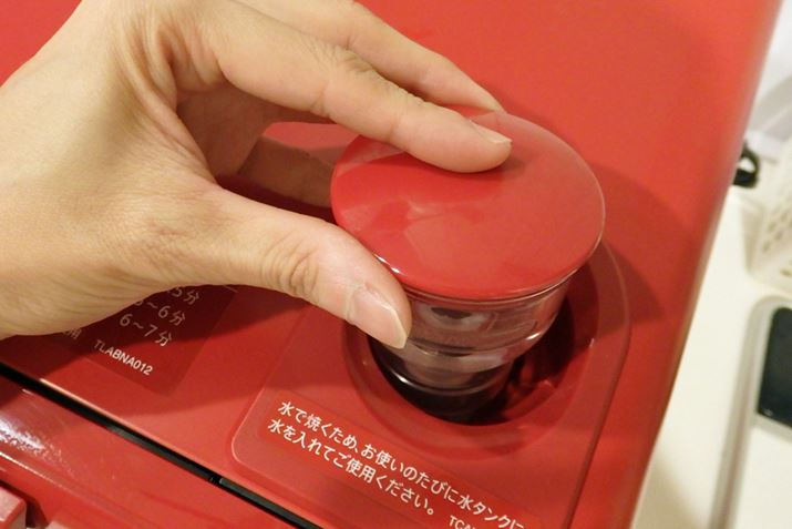 過熱水蒸気で調理するために毎回欠かせないのが水。天面にある水タンクを取り外し、水を入れて調理のたびにセットしましょう。セットすると電源がオンになる仕様なので、水の入れ忘れは防げそうですね