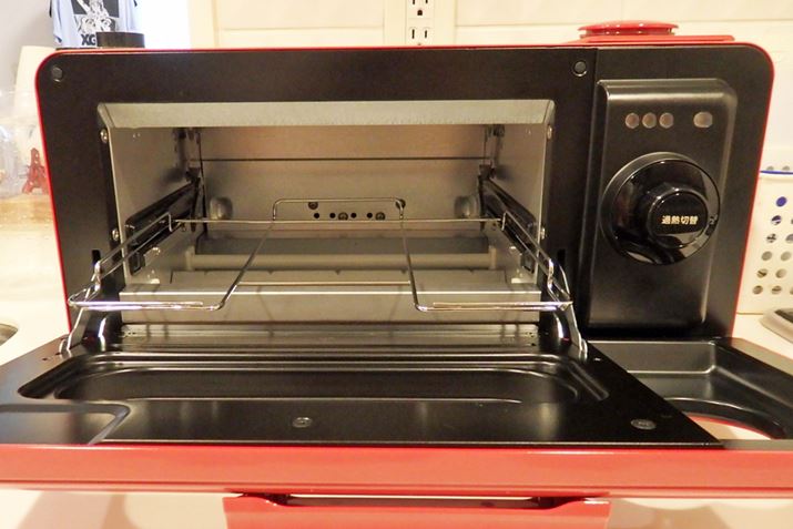 庫内サイズは259(幅)×76(高さ)×230(奥行)mmなので、一般的な食パンも2枚並べられますね。ちなみに、ヒーターが天面と底に搭載されていますが、庫内の温度をキープするために使われます。食材の加熱にはヒーターは利用せず、過熱水蒸気のみで調理