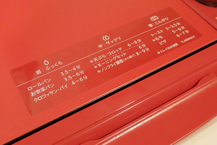 温度設定や加熱時間の目安は付属のレシピブックで確認できますが、よく使うであろう調理については天面に明記されています。この温度や時間を参考にすれば、いろいろな料理に応用できるでしょう