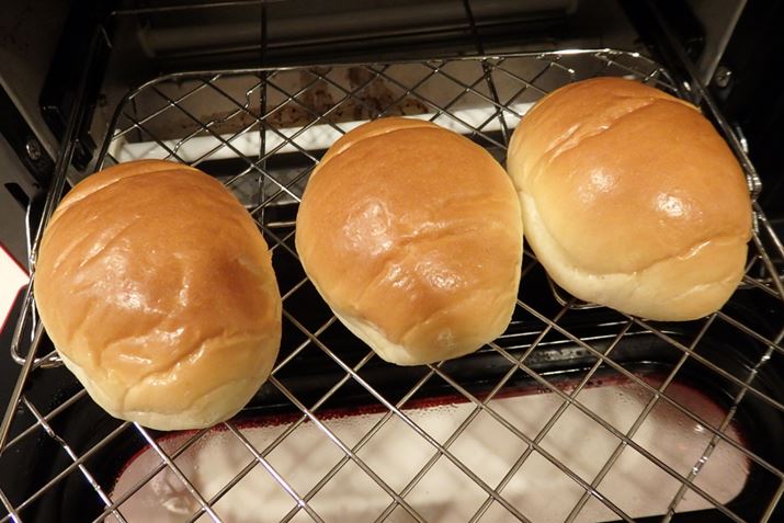写真を見ると焼く前の状態かと思われるかもしれませんが、トースト後です。バターロールは天面だけ真っ黒に焦げてしまうことがありますが、まるで成形したパンを焼きたてという感じの仕上がりになりました。外も中もふわふわ!