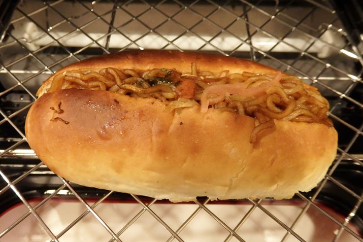 具材がたくさん詰まっているやきそばパンは、どうしても中央部分がぬるくなります。しかし、ヘルシオ グリエで焼いたものはほぼ均一な温かさに! また、上部に出ているやきそばの水分が抜けてパサパサにもなっていないのが素晴らしい