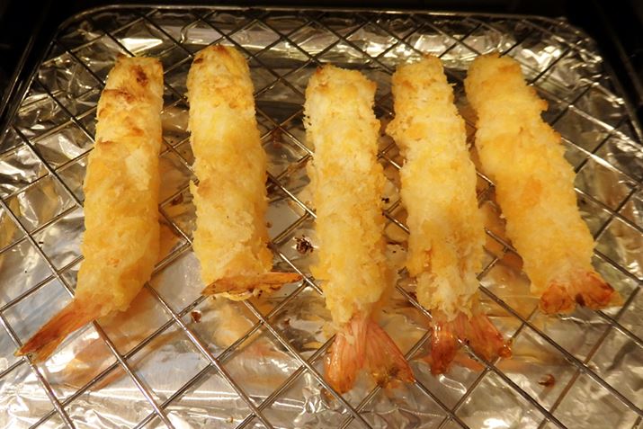 油で揚げたエビフライとまったく同じ味わいとはいえませんが、エビフライです! ほんの少ししか油を使わず、この完成度ならアリですね